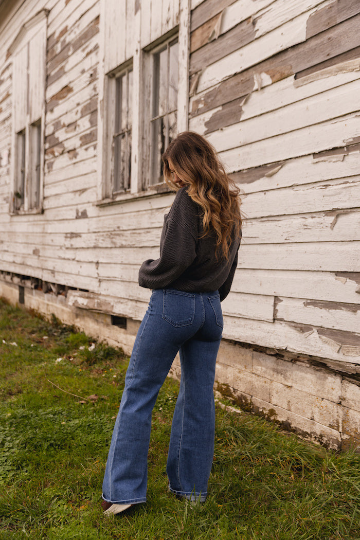 These jeans are some of the most comfortable, yet flattering jeans I’ve ever owned. With the high waist and buttery denim, they fit me perfectly. Plus the wide flare leg looks cute with different styles of shoes.