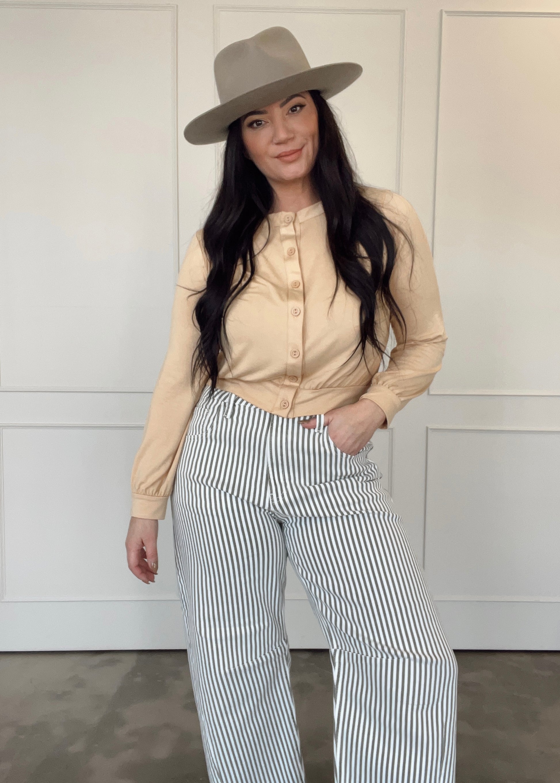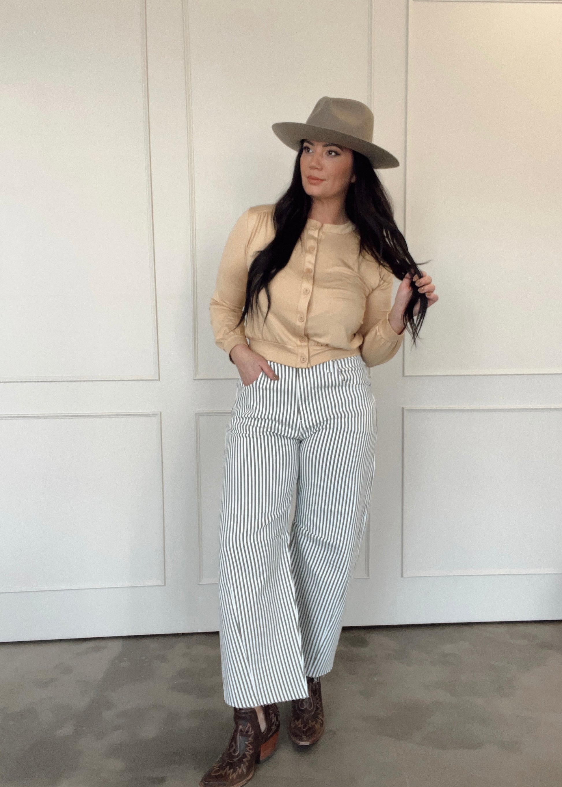 The Greenwood Stripe Barrel Jean blends heritage workwear vibes with a modern, fashion-forward barrel silhouette. Designed with a flattering high rise and subtle curve through the leg, these jeans give you structure and ease in all the right places.
